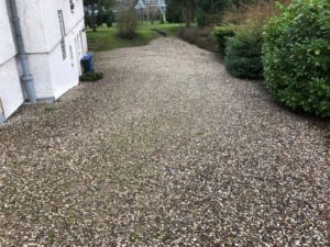Remplissage avec des pavés en granit pour finir la nouvelle entrée moderne et durable.
